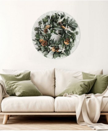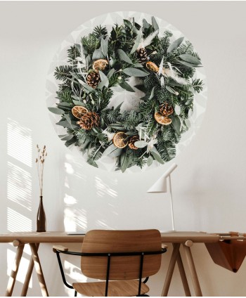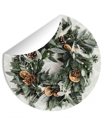 Naklejka ścienna samoprzylepna w kształcie koła (średnica 100 cm) Wieniec z Jodły i Eukaliptusa to unikatowy element dekoracyjny, który przyciągnie wzrok każdego gościa, a wnętrzu doda świątecznego klimatu. Wybierz jeden z sześciu uroczych wzorów i ciesz się pięknym efektem dekoracji bez skomplikowanego remontu!