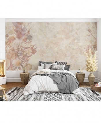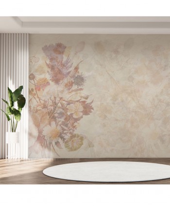 Tapeta kwiatowa florystyka utrzymana jest w niezwykle modnej i eleganckiej kolorystyce. Dominujące odcienie ecru, ciepłego beżu, pudrowego różu i zgaszonych brązów tworzą efekt vintage, przywodzący na myśl botaniczne ryciny. Subtelnie rozmyte kwiaty i liście sprawiają wrażenie, jakby zostały namalowane bezpośrednio na ścianie, co nadaje pomieszczeniu niezwykłej lekkości i artystycznego charakteru.